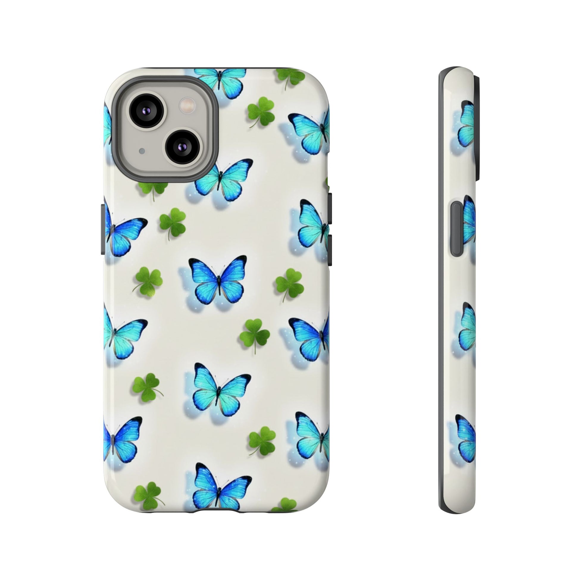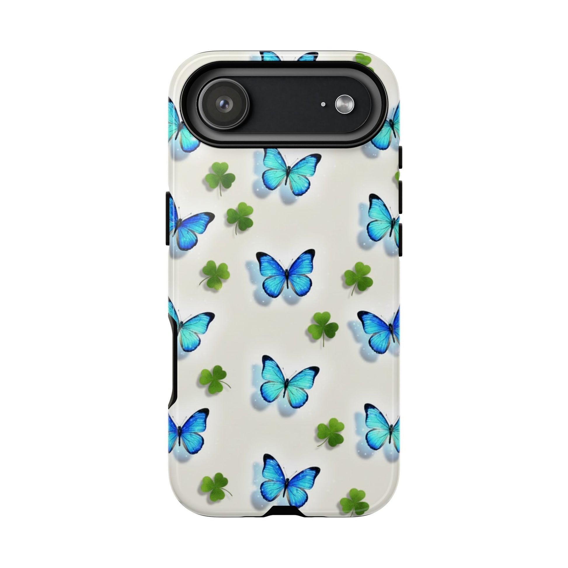 Funda protectora resistente con diseño de mariposas y trébol de la suerte para iPhone, Samsung Galaxy y Google Pixel: diseño de mariposas azules