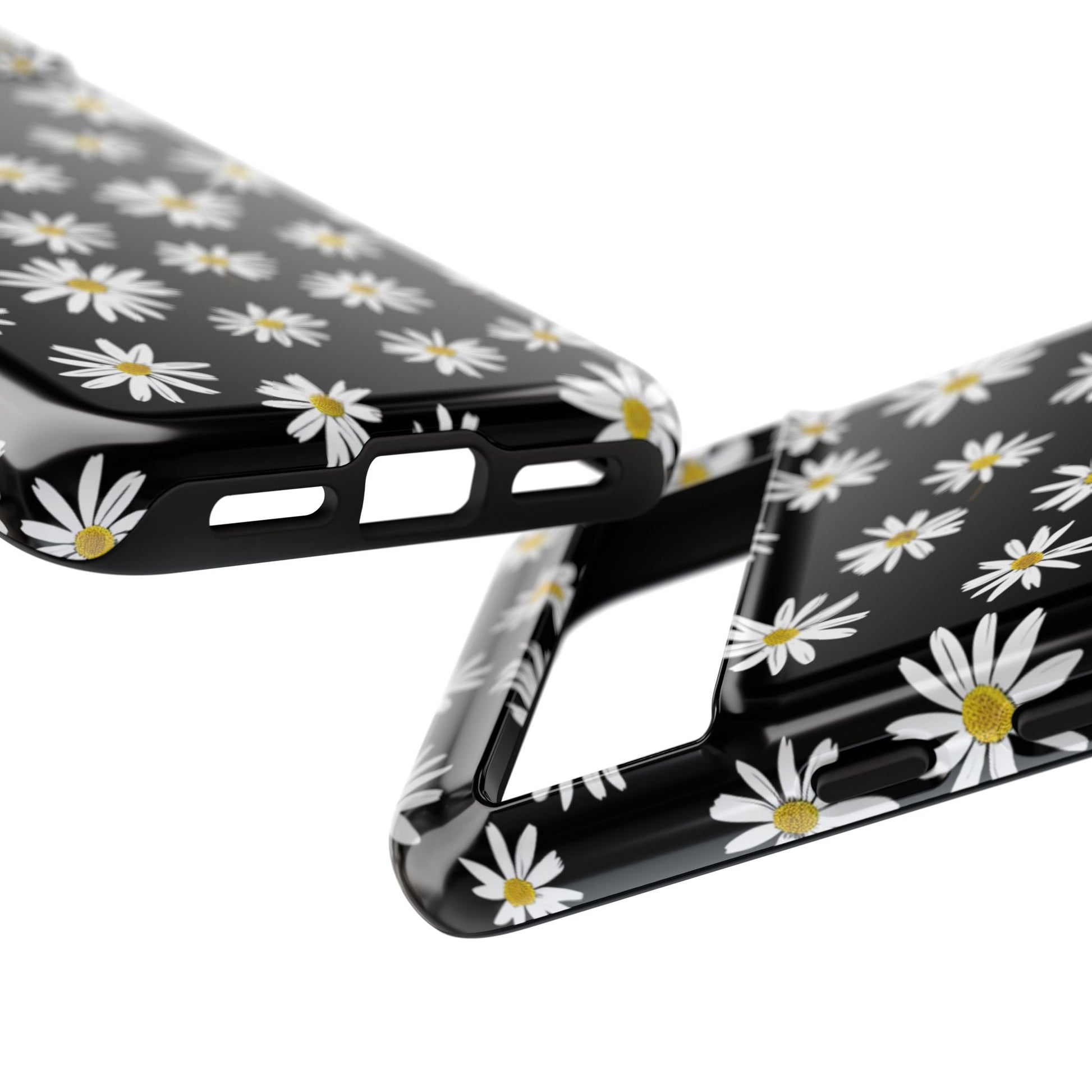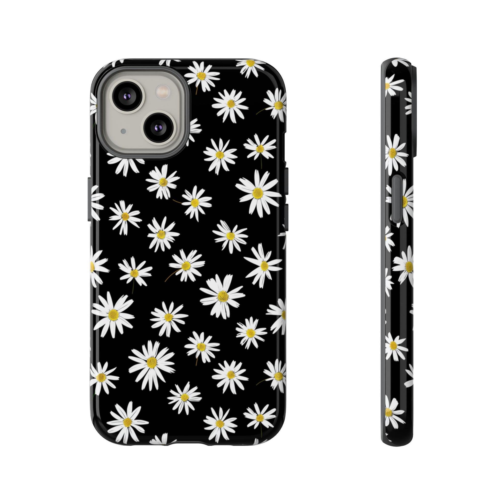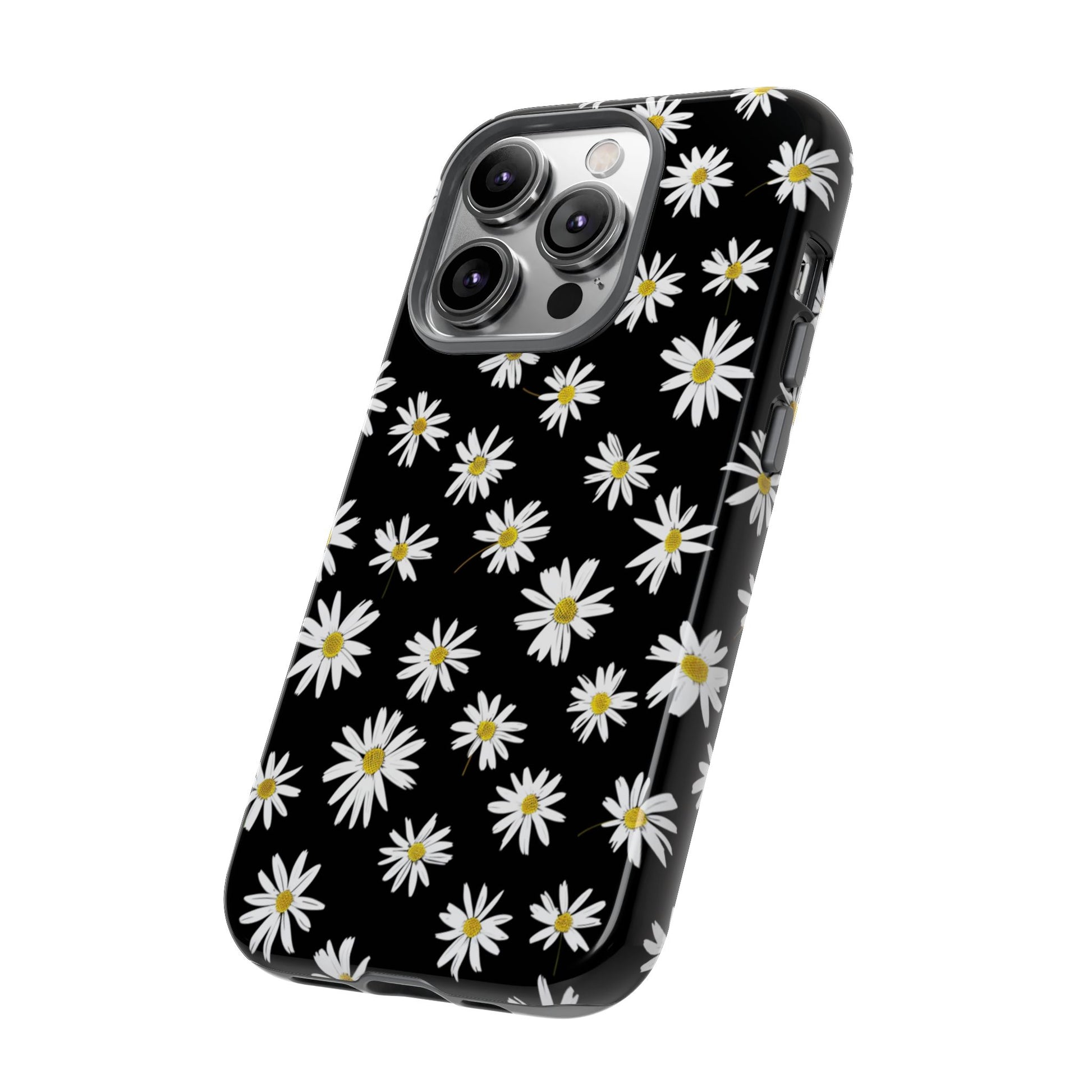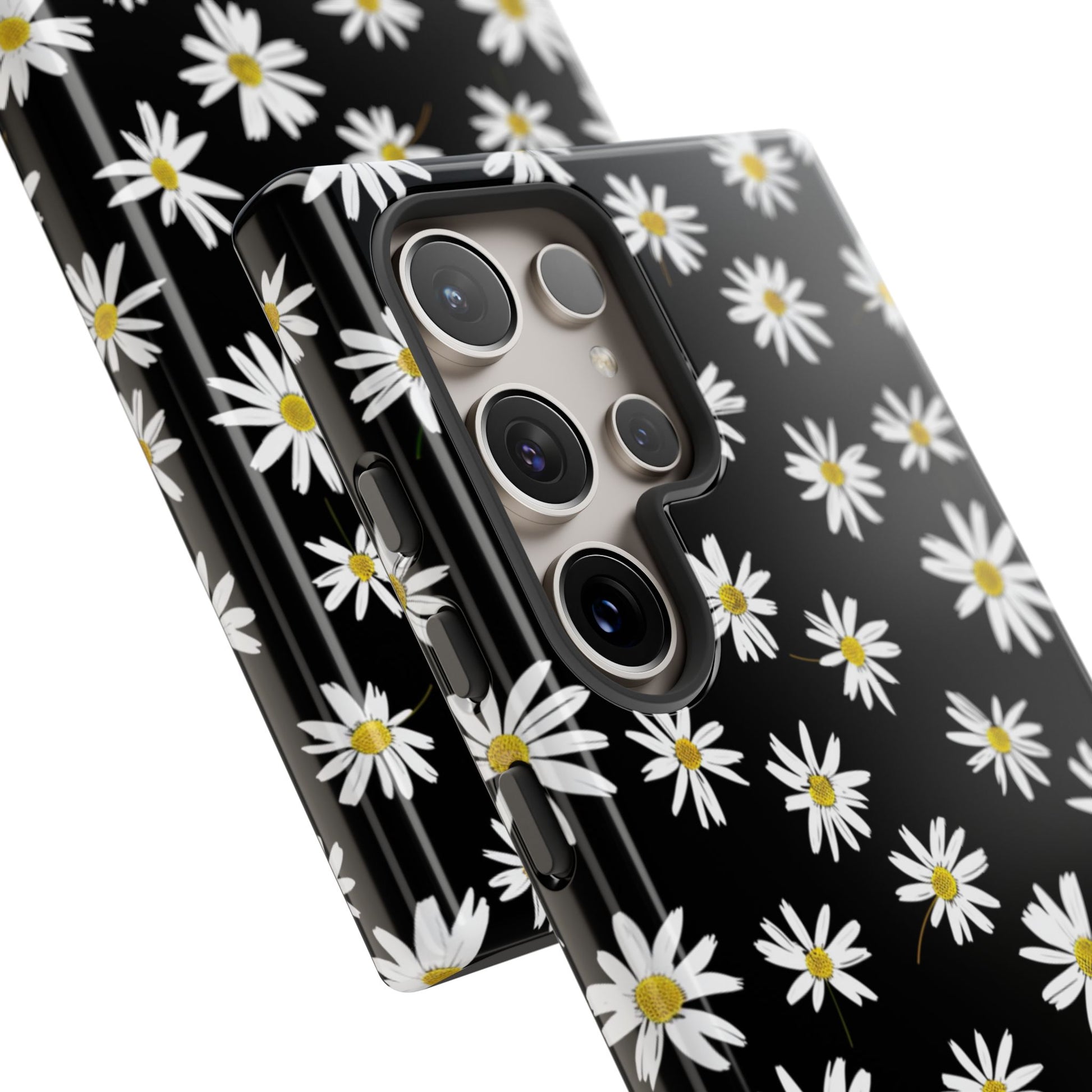 Coque de téléphone résistante à motif marguerites - Coque de protection florale noire pour iPhone, Samsung Galaxy et Google Pixel