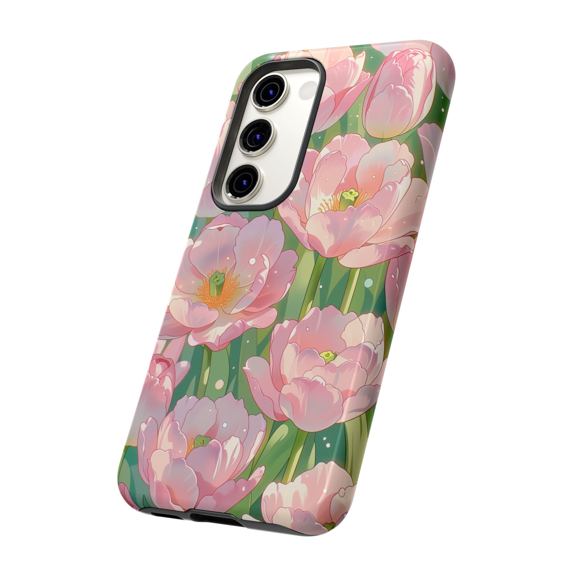 Floral Tulip Tough Phone Case - Pink Spring Blossom Watercolor Pattern Cover for iPhone, Samsung Galaxy & Google Pixel